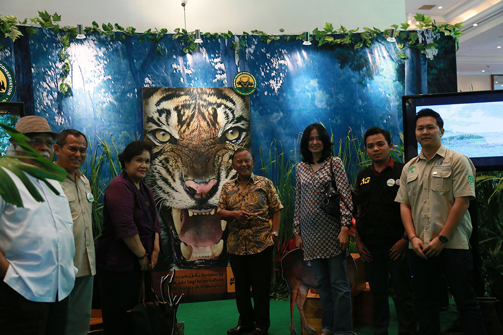 Bpk. Rachmat Witoelar dan rombongan di booth Artha Graha Peduli pada saat acara Indonesia Climate Change Education Forum and Expo - 02 May, 2014 Assembly Hall JCC, Jakarta