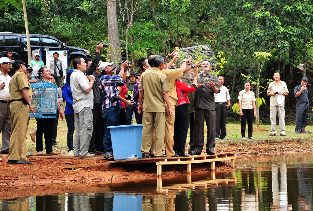 Bpk. Cornelis dan Ibu melepaskan kura-kura ke danau konservasi PT. CUS - 04 Sept, 2014 Kayong Utara, Kalimantan Barat